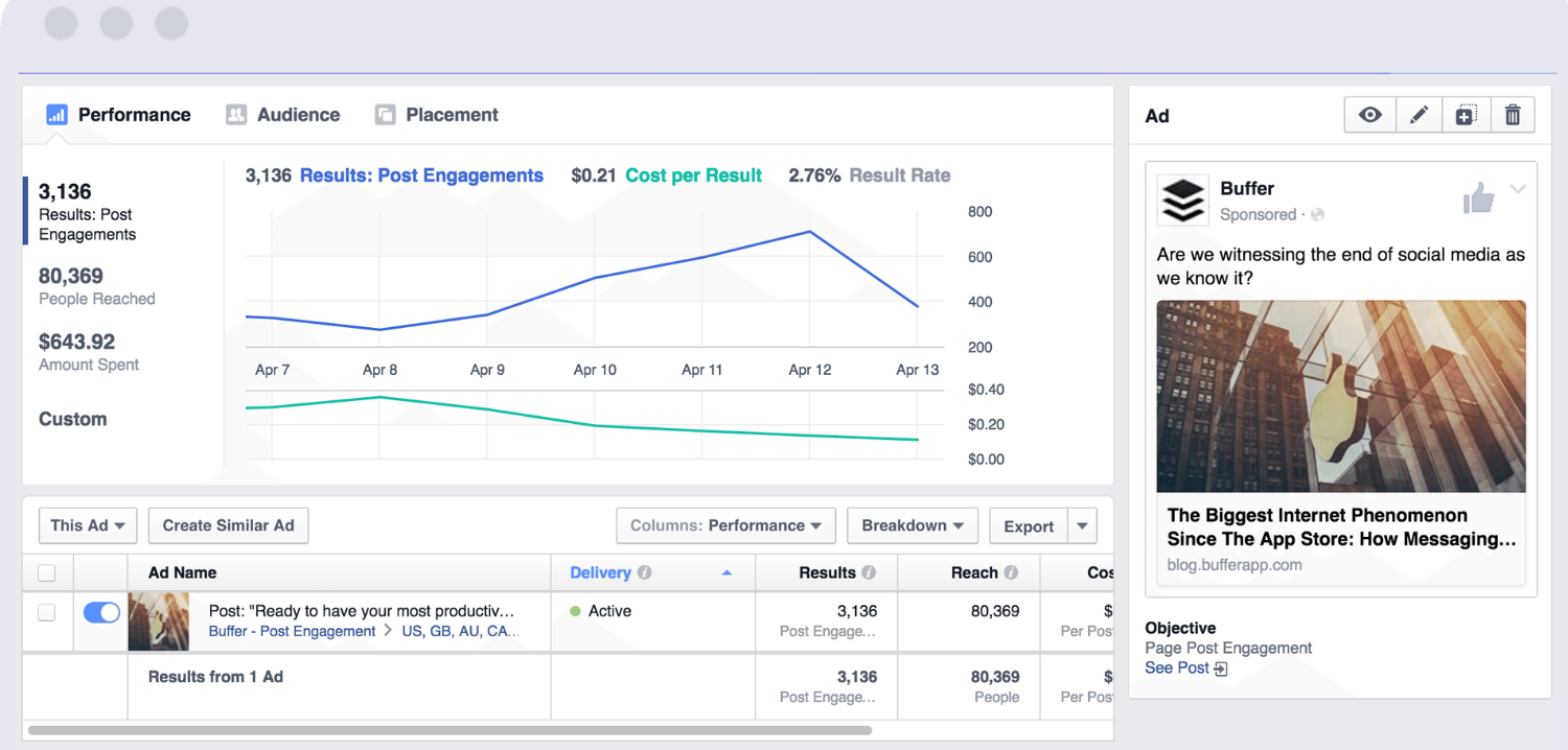 That’s MYTH #1. In fact, here is a screenshot of a non video campaign to prove that ads don’t have to be video to work.
